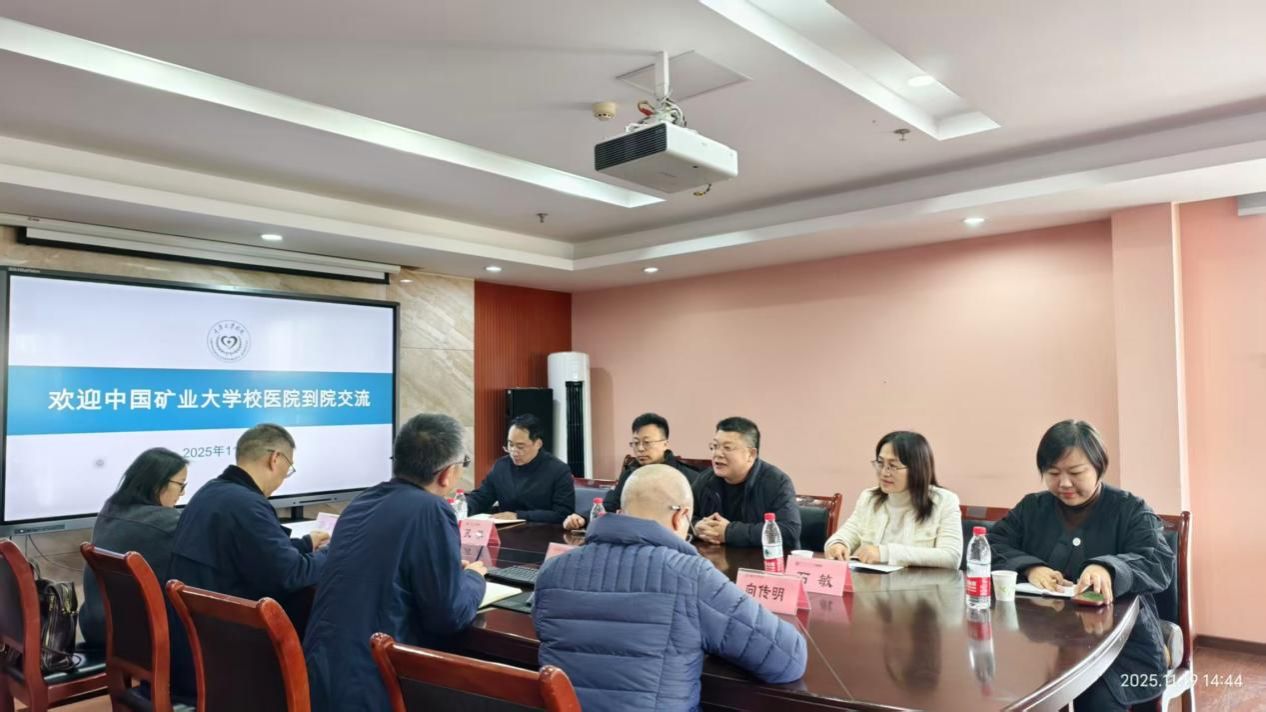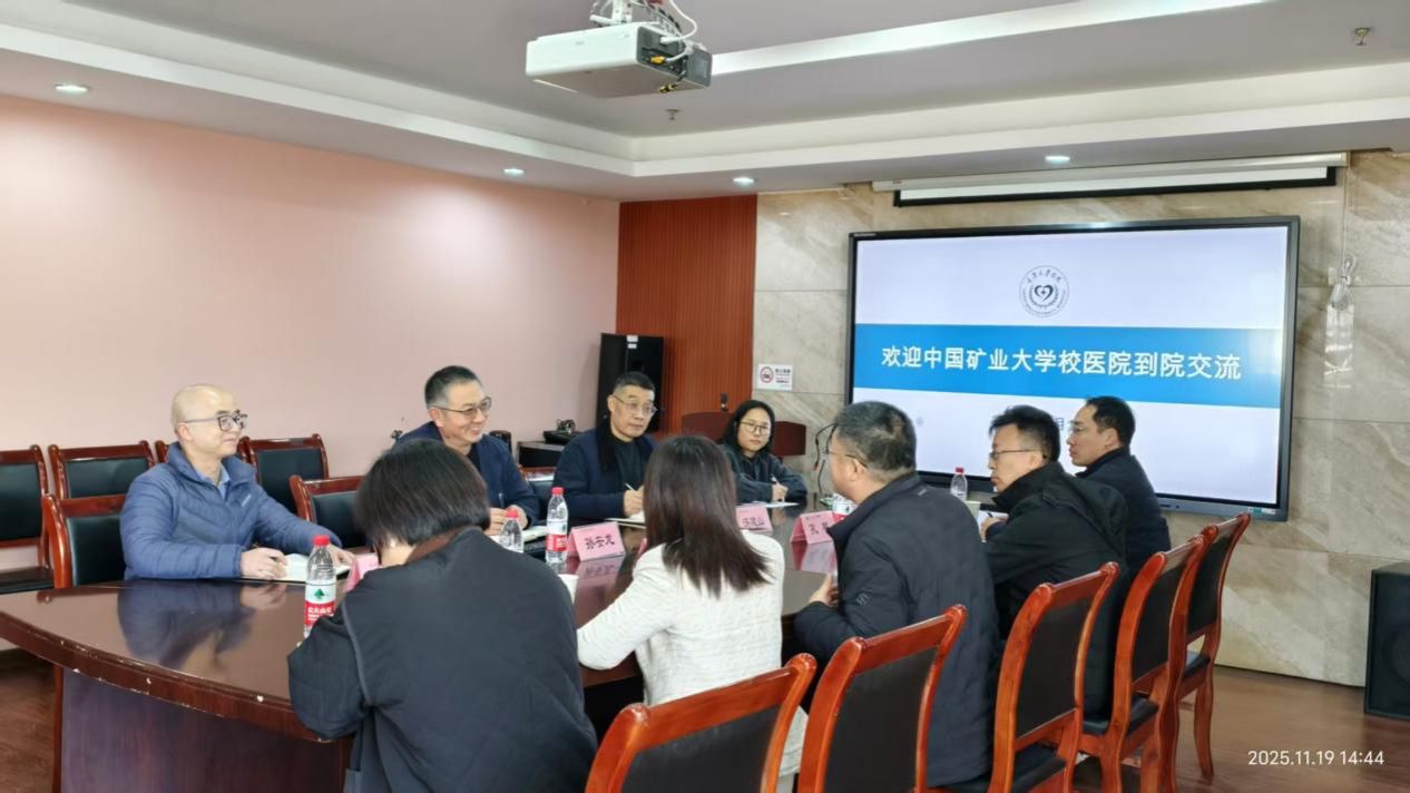 张洪院长介绍了中国矿业大学校医院现状,双方就校医院运行机制、人员经费的分配利用、特色科室如何运行等方面进行了深入交流,对打造老年照护中心,为失能、半失能离退休职工及家属提供医疗、健康管理等服务,延伸医疗服务链条等内容进行了重点探讨。