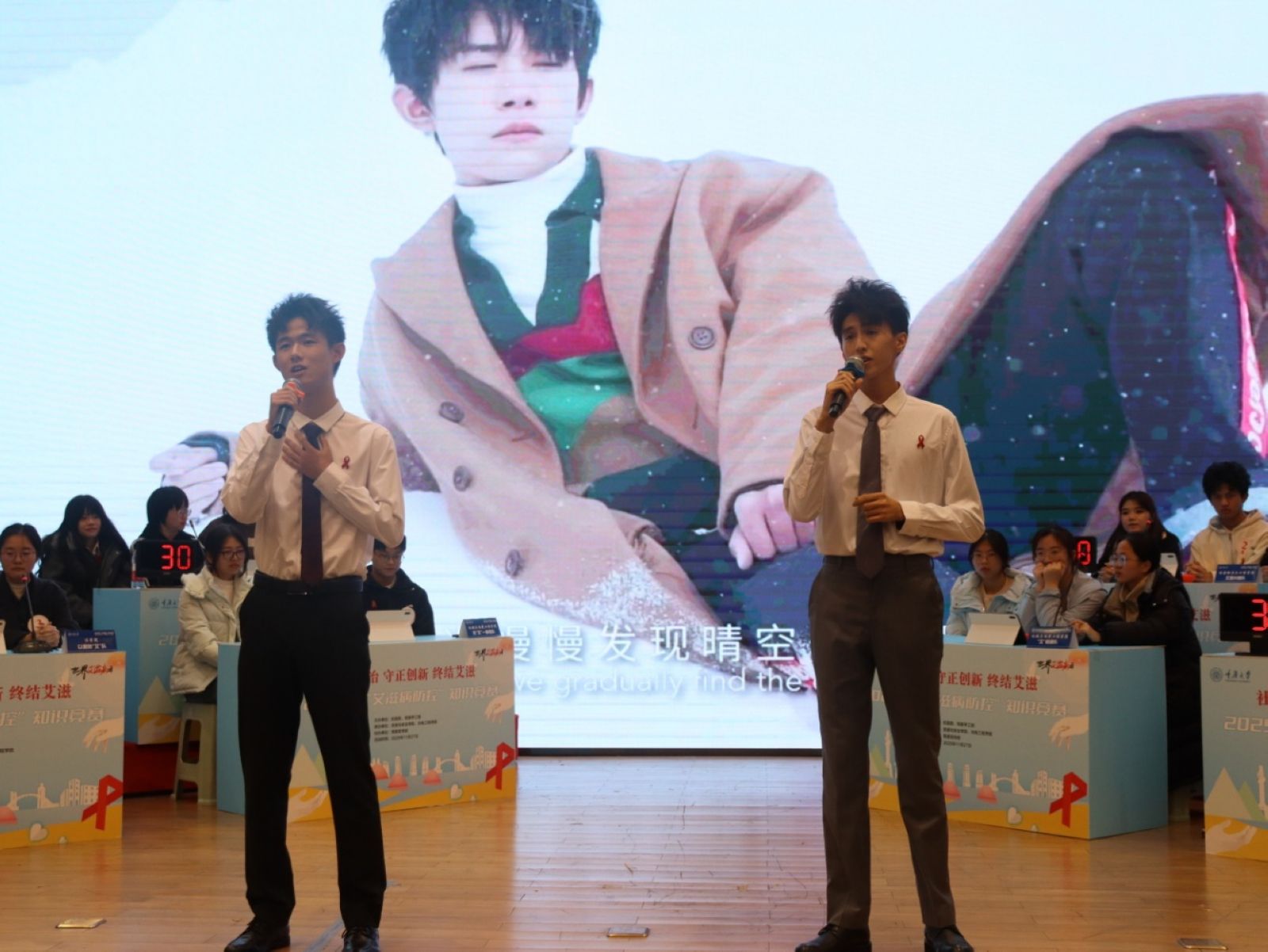 竞赛期间,电影学院的同学带来歌曲《拥抱你》,以温暖动人的旋律传递对艾滋病感染者的关爱与支持;艺术学院的同学表演舞蹈《绿野小子》,用遒劲的舞姿展现青春的活力,赢得现场观众热烈掌声。