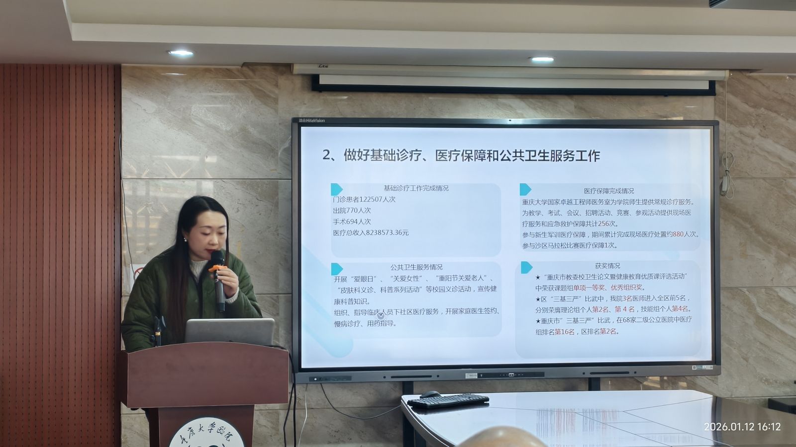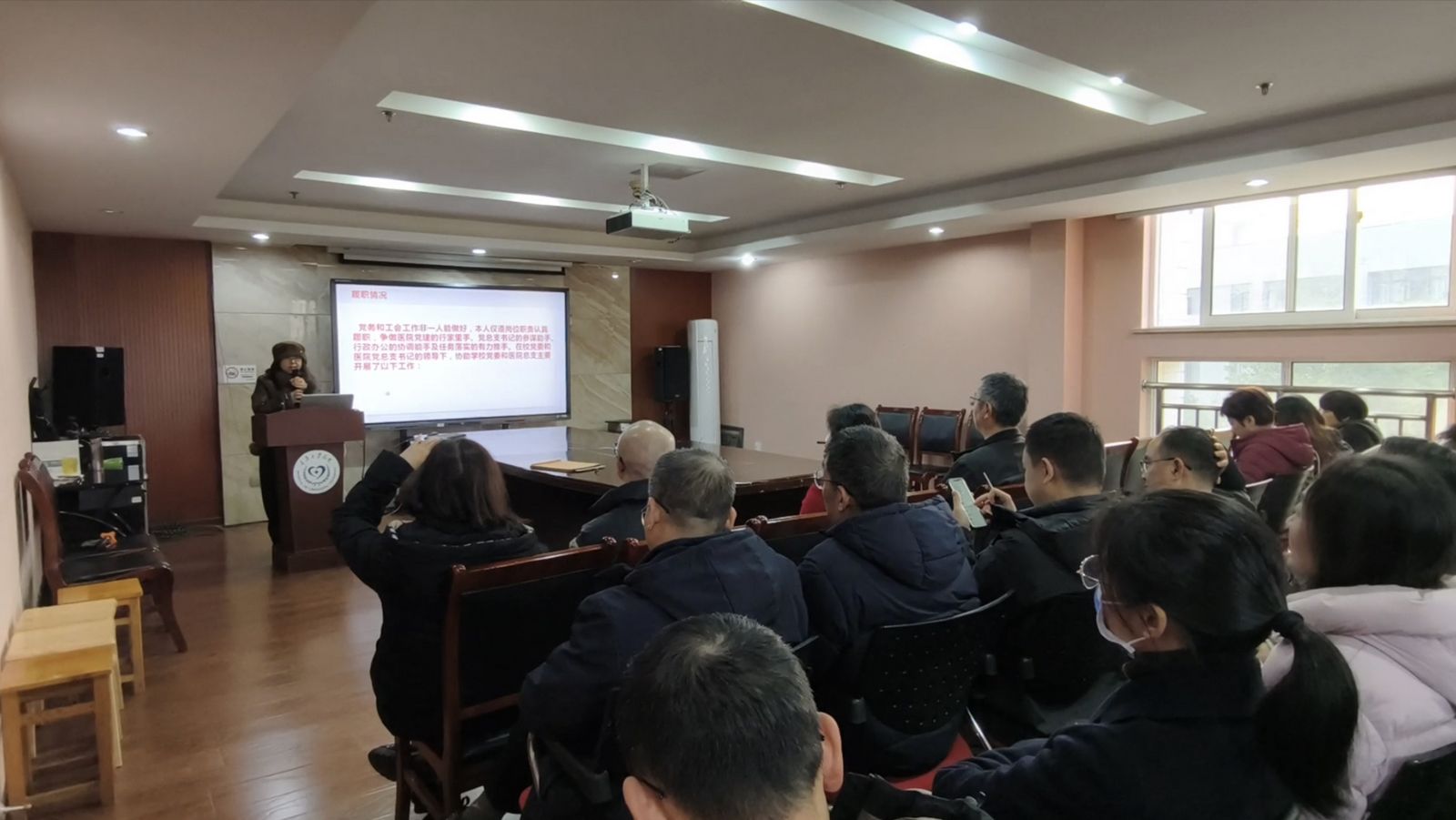 李华书记作总结发言,她表示,医院召开考核述职和民主测评会既是一次工作的复盘会,更是一次交流和学习的促进会。通过述职,各科室相互借鉴、查找差距、增进了解、共同进步。随着医改的深入推进、周边医疗机构日益激烈的竞争、师生不断提升的医疗健康需求,面对这样的形势,各科室负责人一定要认真谋划2026年的工作,克服畏难、畏新、畏量的消极情绪,讲政治、讲团结、讲攻坚、讲担当,不断推动医院高质量发展。